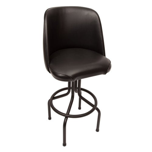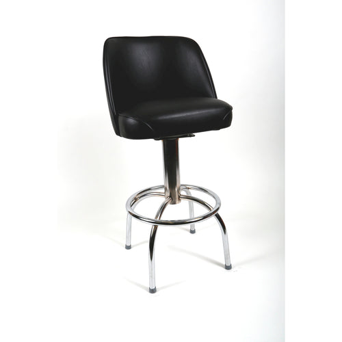 Tulip Swivel Bar Stool, indoor use, 30" seat height, bucket upholstered seat & back, metal frame with foot rest ring