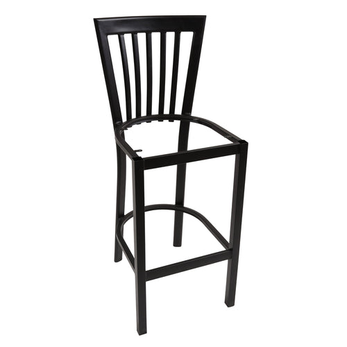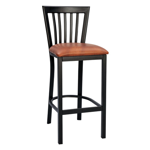 Vertical Bar Stool, indoor use, 30" seat height, vertical slat metal back, upholstered seat (available in counter height)
