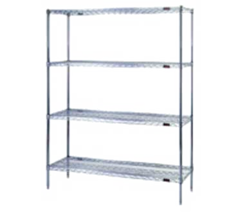 Starter Shelving Unit, 4-tier, 60"W x 18"D x 63"H, wire shelves with patented QuadTruss® design, (4) 63"H posts, chrome-plated finish, KD, NSF
