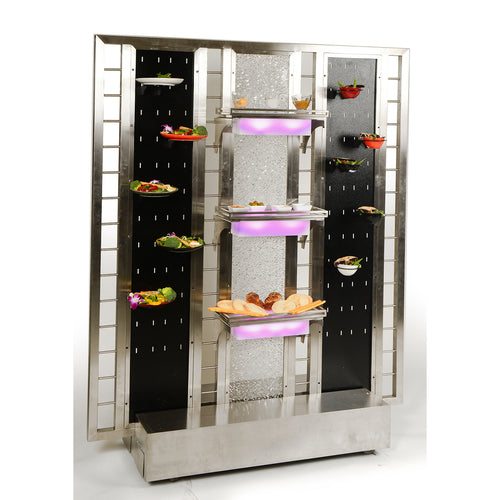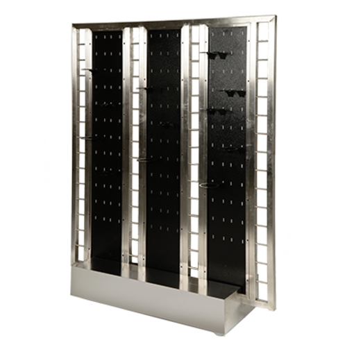 Slotwall Insert, with slot cutouts, includes: (12) black coated steel brackets, for individual portion control serving bowls, 3-7/8" inside diameter of bracket, can fit (3) slotwalls on grandstand model #1780, black coated finish