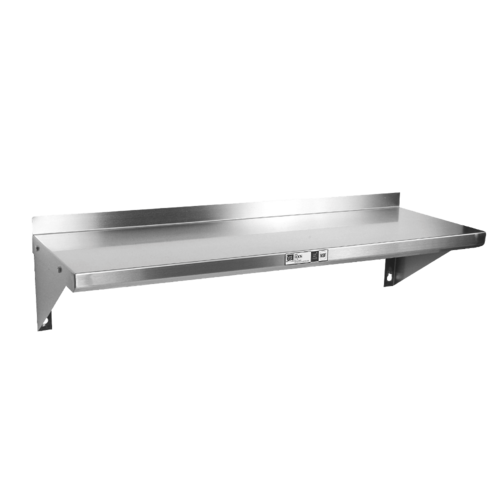 Shelf, wall-mounted, 132"W x 12"D x 9-1/2"H overall size, 1-1/2" rear up-turn, Stallion Safety Edge front, 14/300 stainless steel, NSF, KD
