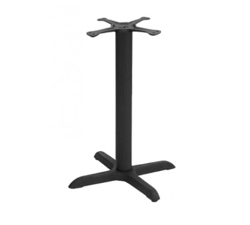 Table Base, dining height, 22" x 22" base spread, 11" spider size, 3" column, four prong base, plastic glides, cast iron, powder coated black, table top size: 24"-30" round, 24" x 24", 30" x 30", 24" x 30"