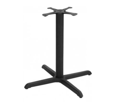 Table Base, dining height, 30" x 30" base spread, 11" spider size, 3" column, four prong base, plastic glides, cast iron, powder coated black, table top size: 36"- 42" round, 36" x 36"