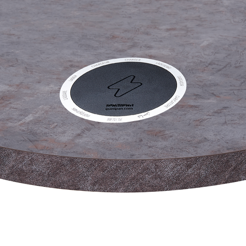 Relic Table Top, 48" dia., round, with (3) flat pack wireless chargers installed, with (3) flat pack wireless chargers installed, 2" thick, MDF core, melamine surface with PVC self-edge, rustic copper