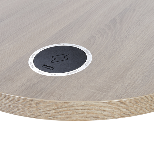 Midtown Table Top, 24" dia., round, with (1) flat pack wireless charger installed, 1-7/8" thick, honeycomb core, laminate, sawmill oak
