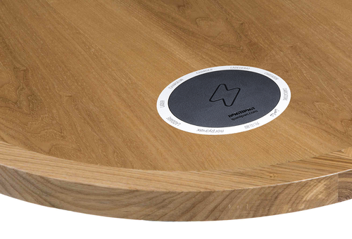 Table Top, 48" dia., round, with (1) flat pack wireless charger installed, 1-1/4" thick, natural ash wood edge with veneer inlay