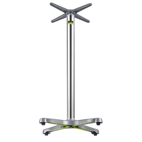 BX26 Table Base, bar height, 26" cross base, 2-5/9" dia. column, 14" x 14" mounting plate, indoor/outdoor use, hydraulic PAD stabilization technology, aluminum, polished finish, max tabletop size: 30" round and 26" square (ships in 3 boxes)