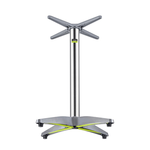 CX26 Table Base, dining height, 26" cross base, 2-5/9" dia. column, 14" x 14" mounting plate, indoor/outdoor use, hydraulic PAD stabilization technology, aluminum, polished finish, max tabletop size: 28" square/round (ships in 3 boxes)