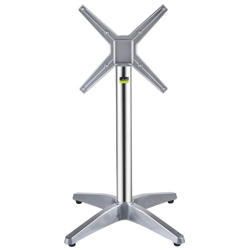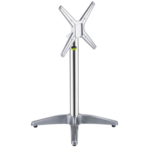 CX26 Table Base, dining height, 26" cross base, 2-5/9" dia. column, 14" x 14" flip top mounting plate, stackable, indoor/outdoor use, hydraulic PAD stabilization technology, aluminum, polished finish, max tabletop size: 28" square/round (ships in 4 boxes)