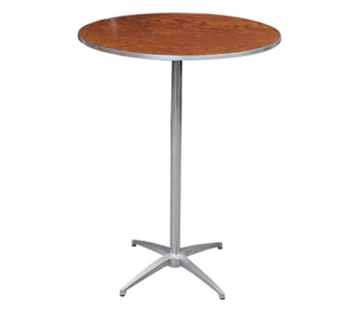 200 Series Pedestal Table, round, 24" dia. x 42"H, 3-piece, 5/8" thick plywood top with walnut sealer stain & UV polycoat, aluminum "C" channel edge, steel tapered column attached to k-plate and base, shipped KD