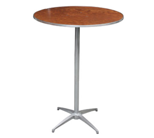 200 Series Pedestal Table, round, 30" dia. x 42"H, 3-piece, 5/8" thick plywood top with walnut sealer stain & UV polycoat, aluminum "C" channel edge, steel tapered column attached to k-plate and base, shipped KD,