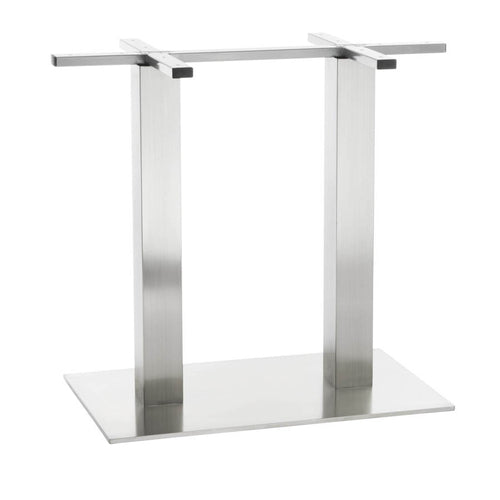 GS Series Table Base, 16" x 28" spread, 3" dia. column, dining height, indoor/outdoor use, includes adjustable floor glides, stainless steel, brushed finish (Quick Ship)