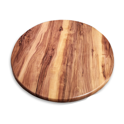 isotop® Table Top, 48" dia., round, for indoor/outdoor use, 1-3/8" drop edge, exclusive multi‐layered protective coating, natural hickory finish, Quick Ship (7-10 days lead time)