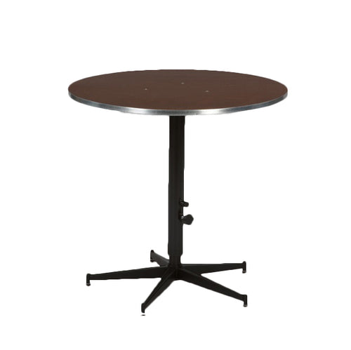 ACR Series Tri-Height Cocktail Table, round top, 24" dia. x 30", 36" & 42"H, adjustable height, E top, red mahogany stained surface, 3/4" plywood core, galvanized steel edge, spring-bolt locking mechanism, 5-point pedestal base