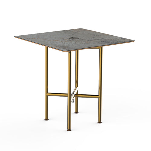 Mogogo Buffet Solutions Clix Table, 30" x 30"H, square, grey slate BHP high pressure laminate with bamboo core top, brushed brass segments