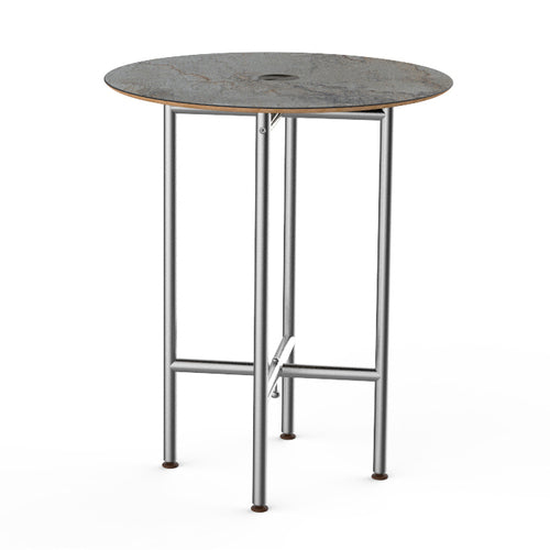 Mogogo Buffet Solutions Clix Table, 30" dia. x 36"H, round, grey slate BHP high pressure laminate with bamboo core top, brushed stainless steel segments