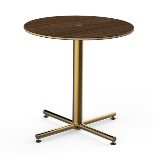 Mogogo Buffet Solutions Bistro Table, 30" dia. x 29" H, round, Bengali mango wood BHP high pressure laminate with bamboo core top, brushed brass segments, knockdown