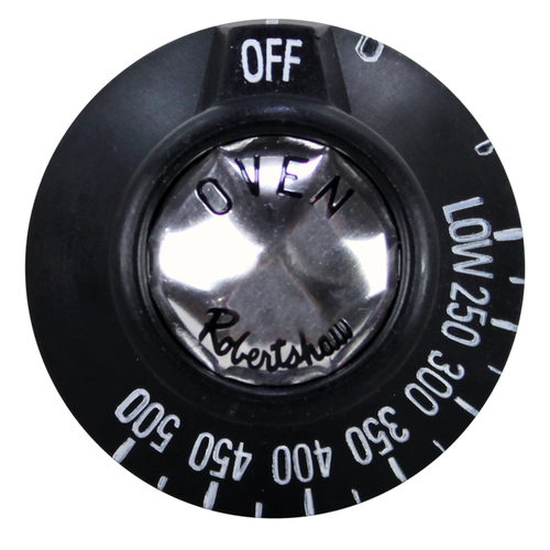 Oven Knob, 2" Dia, Off-Low-250-500, Mount 11/16", Notch Up, 1-3/16" Protrusion On Back Of Knob., For "Bj" T'Stat, Imperial Oven Series: Ir W/Standard Oven., Tri-Star Oven