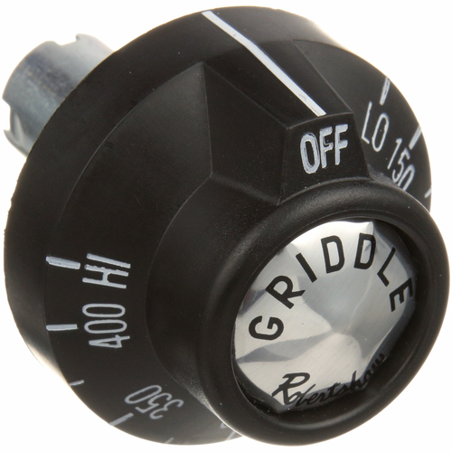 Griddle Thermostat Knob, Black, Off-Lo-400, Notch Down, Potrusion Extends 1-1/4" From Back Of Knob, Southbend Range Series 300, 400, S