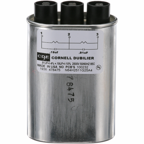 Capacitor, 0.91Uf+0.19Uf, Dual, 2500Vac (50/60Hz),