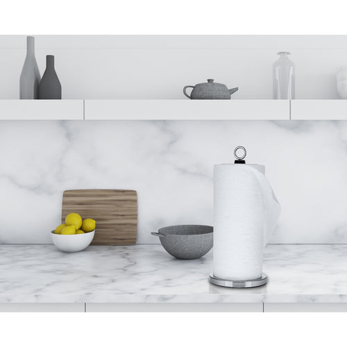 Paper Towel Holder, accommodates standard size paper towel roll, silver ring finish