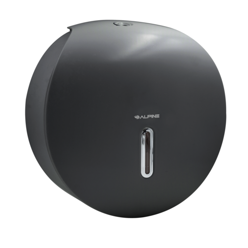 Jumbo Bath Tissue Dispenser, surface mount, single 9" roll, minimum 2-1/2" dia. core, 11-1/2"W x 11-7/10"D x 5-3/10"H, round, clear level indicating window, lock feature, ABS plastic, gray