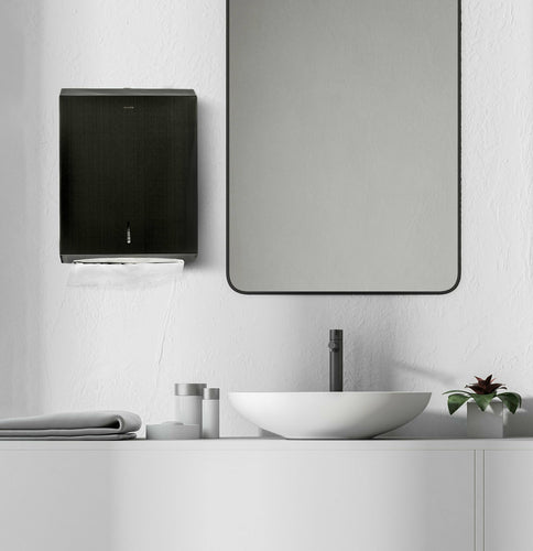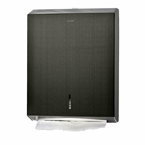 Paper Towel Dispenser, 11-1/5"W x 4"D x 14-1/2"H, wall-mounted, holds (400) c-fold or (525) multi-fold paper towels, level indicating window, lock & key, 304 stainless steel, brushed finish, brushed antique nickel