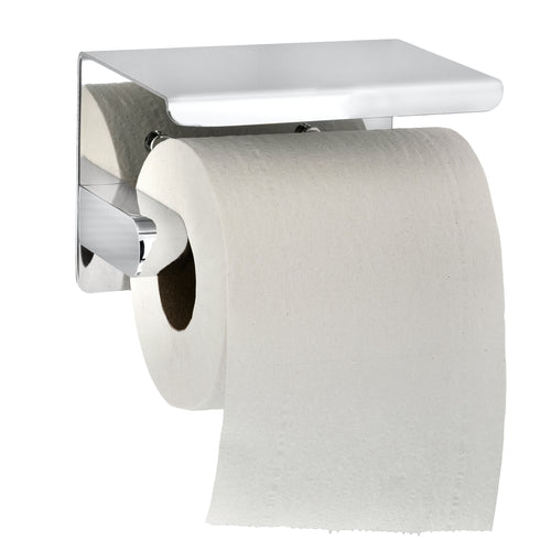 Toilet Tissue Dispenser, wall mount, single standard roll, 5-1/2"W x 3-4/5"D x 3-9/10"H, horizontal orientation, with shelf storage rack, (1) stainless steel arm screws on and off for restocking, 304 stainless steel, chrome finish