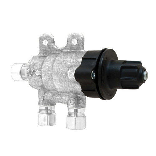 ECAST® Thermostatic Mixing Valve, for single or multiple faucet installations, adjustable cap with locking feature, 3/8" compression inlet and outlet, integral inlet check valves, plastic wall bracket, brass body construction with corrosion resistant internal components, rough chrome finish, CSA NSF/ANSI 372 low lead content, cCSAus, NSF/ANSI 61, Section 9