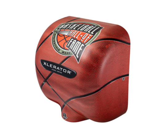 XLERATOR® Hand Dryer, surface-mounted, 8 seconds dry time, automatic sensor activated, adjustable speed & sound controller, 35 second lockout feature, red LED light, custom special image, OSHA Approved, Building Green Approved, cULus, CE, RoHs, Made in USA