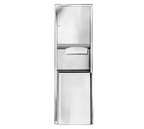 Bobrick® Paper Towel Dispenser, 15-5/8" x 4" x 54-1/2" H rough wall opening, recess mounted, for C-fold or multi-fold towels, projecting waste receptacle, stainless steel