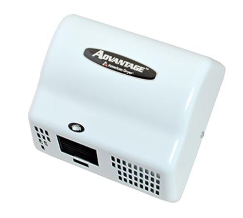 American Dryer® Hand Dryer, 9-3/8" H x 10-1/8"W x 5-5/8"D, surface mounted, NoTouch™ feature, vandal resistant, white epoxy, steel, includes allen wrench, 120/240v, 12.5/6.5 amp, 1400/1250 watt, ADA