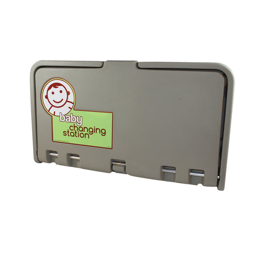 Baby Changing Table, 35"L x 20"W x 4"H (closed), holds up to 50 lbs., built-in liner storage, include safety strap, mounting hardware & instructions, plastic, gray, meets ASTM & ADA requirements, Made in USA