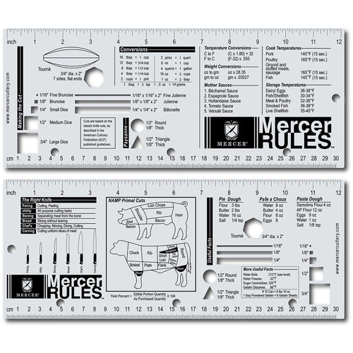 Mercer Rules™, two-sided culinary tool, provides set of measurements and guidelines, stainless steel, 12-1/4" x 5"