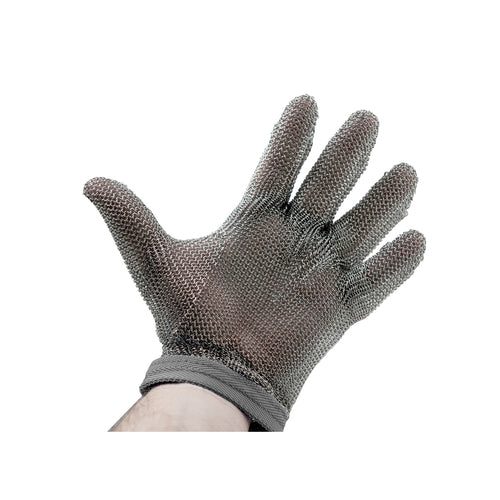 Protective Mesh Glove, X-small, ambidextrous, welded stainless steel rings, adjustable grey wristband snap fastener, USDA, (USA Made)