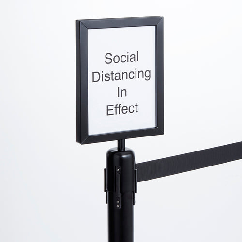 Barrier System Sign, 8-1/2"W x 11"H, for retractable (RBSBL), 2-sided, steel, black finish