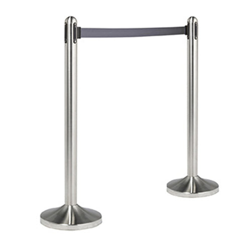 Securit® Barrier Post & Base System, portable, (1) 15" dia. base x 40" high post, (1) 84" retractable grey nylon tape, brushed stainless steel