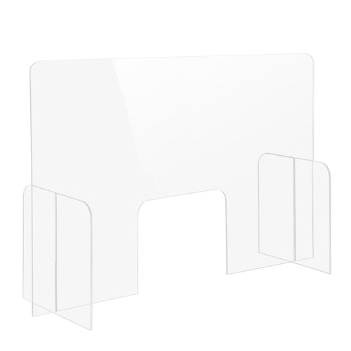 Tabletop Health Safety Shield, 36"W x 12"D x 23-3/4"H, with 12"W x 8"H transaction window, polished edges, acrylic, clear, Made in USA (7-10 day lead-time)