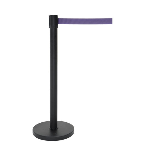 Stanchion, includes: (1) 40"H post, (1) 14" dia. flat 30 lb. base with protective rubber floor guards & (1) 7' purple belt, matte black steel post & base (1 year limited warranty)