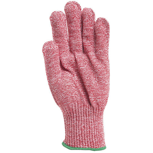 Essentials Pro Max Glove, medium, ambidextrous, straight & serrated cut-resistant, ANSI level A7 cut protection, color-coded cuff to indicate size, dishwasher safe, Tuff-Cuff™ & Comfort Fit™ technology, DoubleGuard™ antimicrobial protection, 10-gauge, Dyneema® & stainless steel yarn construction, red with green wristband, FDA approved, CFR 21 compliant, CE