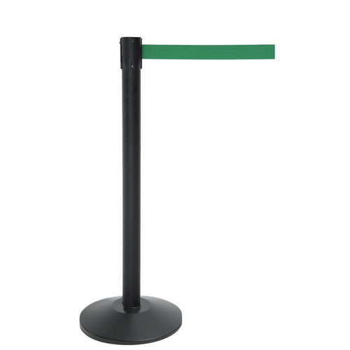 Stanchion, includes: (1) 40"H post, (1) 14" dia. tapered 30 lb. base with protective rubber floor guards & (1) 7' green belt, matte black steel post & base (1 year limited warranty)