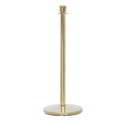 Rope Guidance Base & Post, includes: (1) 38-1/4"H post & (1) 14" dia. tapered concrete base with protective rubber floor guards, steel, polished brass finish (1 year limited warranty)