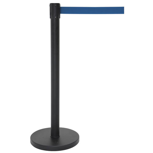 Stanchion, includes: (1) 40"H post, (1) 14" dia. flat 30 lb. base with protective rubber floor guards & (1) 7' blue belt, matte black steel post & base (1 year limited warranty)