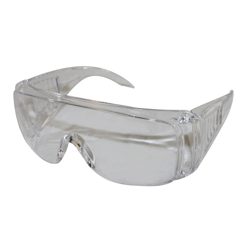 Pro-Guard® Classic 803 Series Safety Glasses, one size fits all, fits over most prescription glasses, wrap-around design, vented side shield reduces fogging, clear lens, clear frame, 100% carbonate, 99.9% UV protection, Pro-Guard imprint, ANSI 787.1 (minimum order = 1 each)