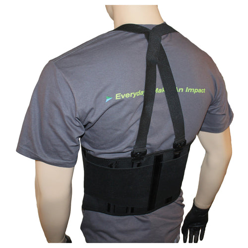 Men's Basic Back Support, x-large (size 47-56), with detachable elastic suspenders, 8" elastic back panel, 3" elastic side pulls, (4) stays, black, Made in USA (minimum order = 1 pair)