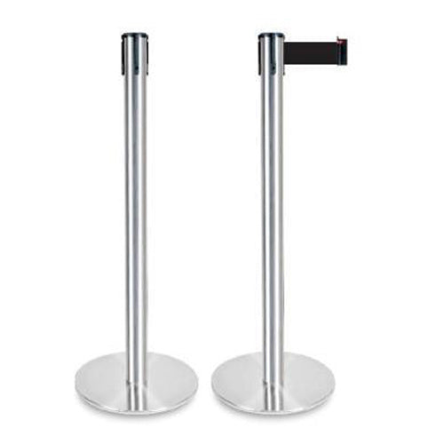 Stanchion Post, 36"H, rectractable, 78"L belt, polished finished stainless steel tube, 13" flat stainless steel base