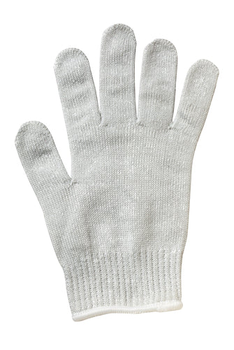Millennia® Cut Glove, Size L, 10 gauge, fits left or right hand, washable and bleach safe, stainless steel reinforced construction, FDA approved materials, ANSI level A5 cut protection, color-coded cuff to indicate size, white with white cuff