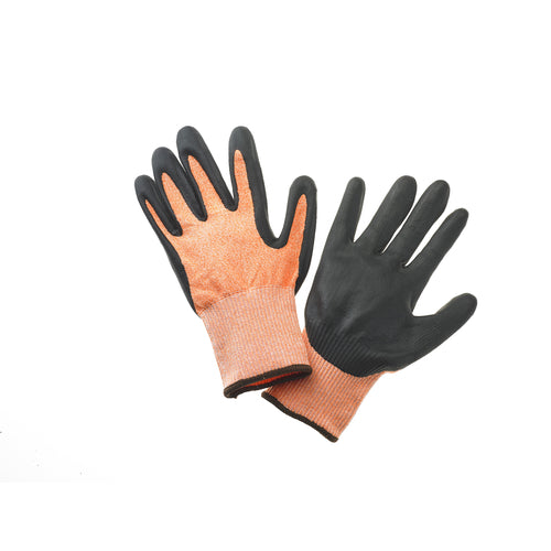 Millennia® Food Processing Gloves, 13 gauge, nitrile coated palm and fingertips, washable and bleach safe, HPPE reinforced construction, FDA approved materials, ANSI level A4 cut protection, color-coded cuff to indicate size, orange with brown cuff, large (12 pair per case)