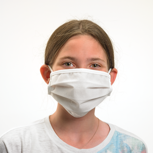 Protective Face Mask, pleated, 7-3/8"L x 3-1/2"W, ASTM F1862 fluid-resistance, hand-wash only, 2-layers polypropylene & 2-ply spunbond SS non-woven fabric, elastic loops, white, youth size - one size fits most