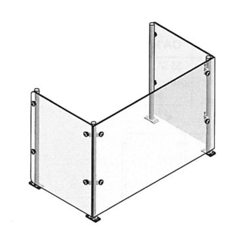 Sneeze Guard, 47-1/2"L, (2) end panels, vertical, single service, 1/4" thick tempered glass shield, flanged feet, powder coated finish (contact factory for price)